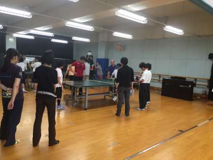 点字を教えていただいたり、アイマスクを着用してのサウンドテーブルテニスを体験させていただきました。限られた時間ではありましたが、貴重な経験をすることができました。視覚支援学校のみなさん、ありがとうございました。