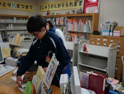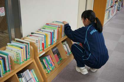 本の整理やカウンターでの業務に取り組んでいます。