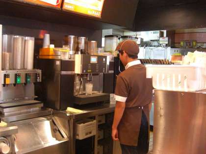 ロッテリア 注文をとって準備しています。