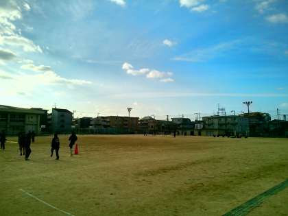 青空が広がるとても爽やかな朝です。運動場では陸上部とソフトボール部がすでに練習を始めています。剣道部は寒稽古に出かけていきました。生徒のみんなも元気に新しい年を迎えているようです。