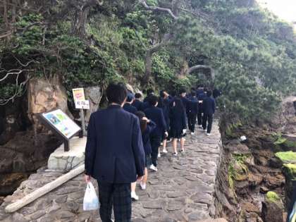 学級別行動、4組 無人島散策の様子です。