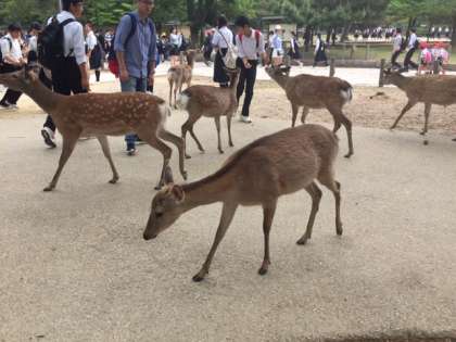 奈良公園では鹿の歓迎も受けています。