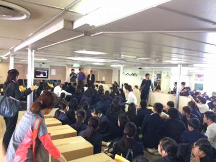 3年生が離島式をして、 フェリーに乗り、博多港へ出発しました。
