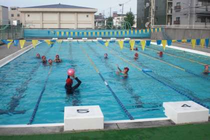 午後からはグラウンドでしっかり練習した後、クールダウンのプールです。