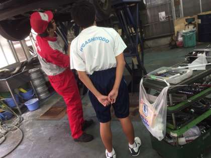 日産大阪販売 豊里店です。自動車整備を見学しています。