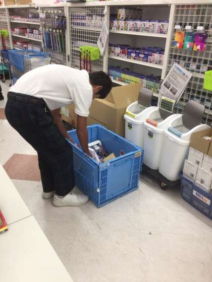 エディオン 東淡路店です。在庫を確認しながら並べています。