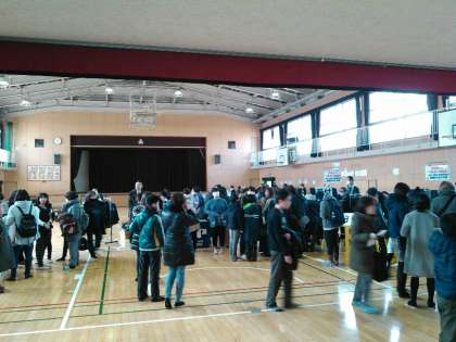 現在、体育館で標準服の採寸を行っています。(午後3時30分終了予定)
