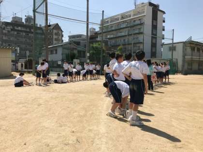 体育大会の学年種目 ムカデ競走の練習をしました。