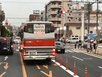大桐2丁目の交差点を過ぎ、 東淀中学校を、目指しています。 4台で走ってるので、到着には 誤差あり。