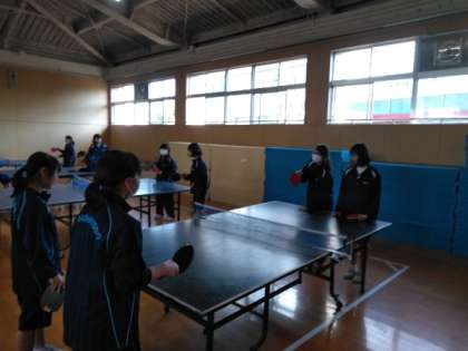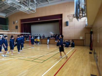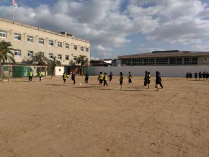 期末テストが終了し、3年生が球技大会を行っています。男女がグループに分かれて希望したスポーツを楽しんでいます。