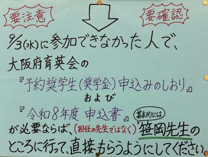 【中学3年生】大阪府育英会「予約奨学生」の申込みについて
