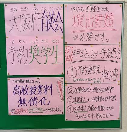 【中学3年生】大阪府育英会の奨学金申込み(校内締切2日前)について