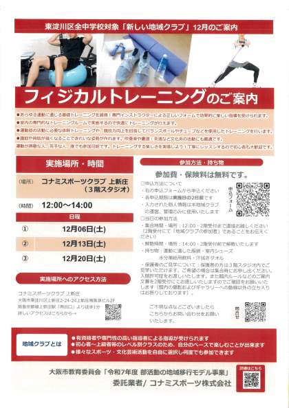 東淀川区全中学校対象「新しい地域クラブ」12月案内