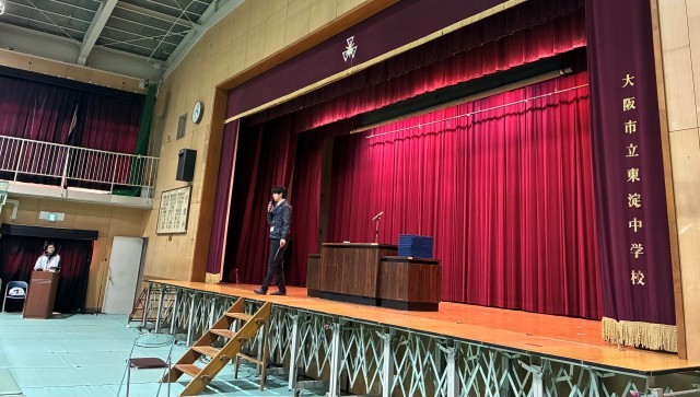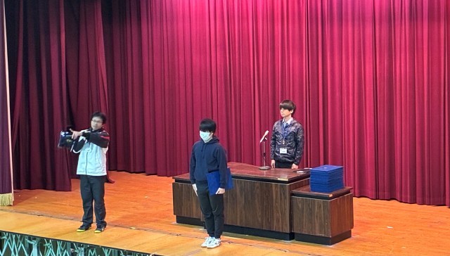 卒業証書をもらう時の所作(振る舞い・身のこなし)などの説明の後、実際の動きを生徒一人ひとりが舞台にも上がっておこない、細かい動作について確認し合いました。