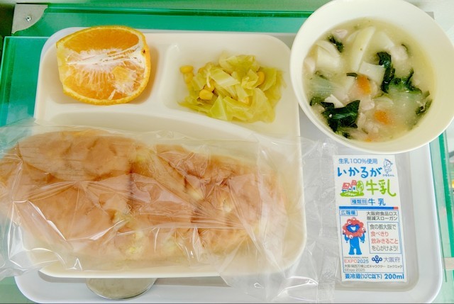 本日の給食はパン食です。