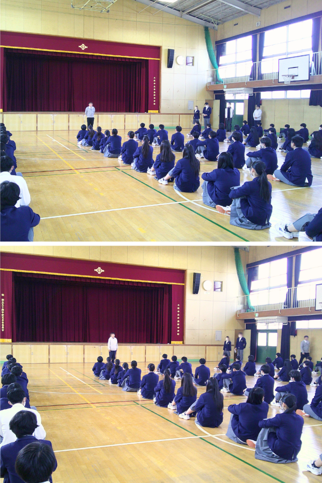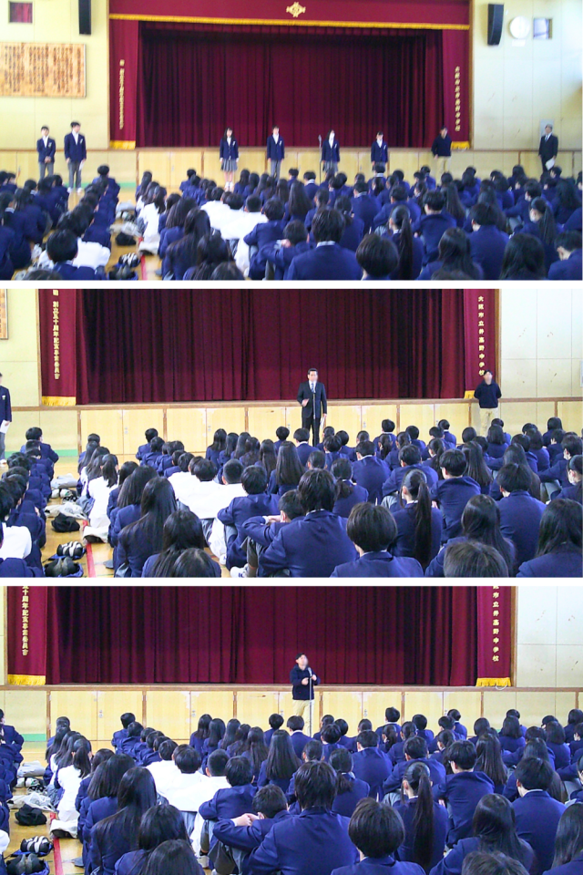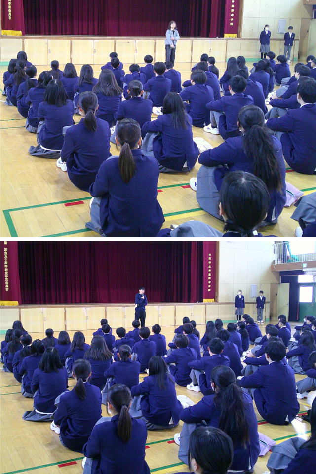 また、先ほど学級代表から合唱曲の発表がありましたが、3月13日(金)の卒業式まで残りひと月と少しになりました。式典である卒業式でも、身だしなみを意識し、きちんとした服装や髪型で参加してください。