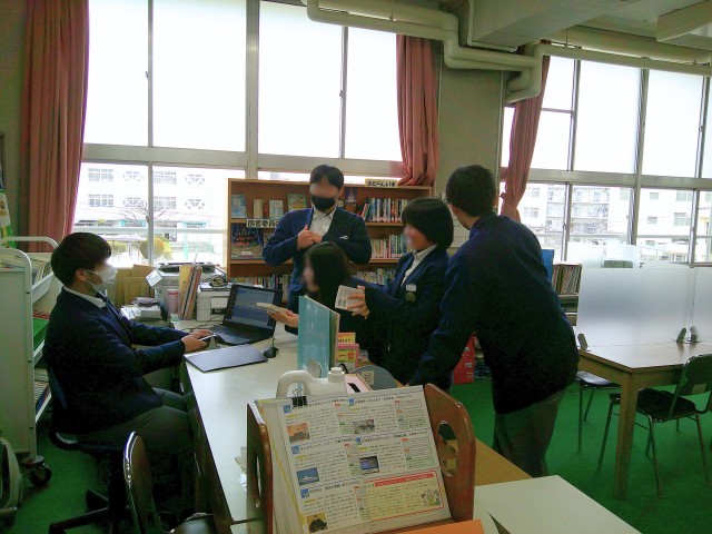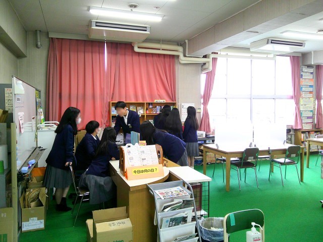 月曜日は通常3年生の図書委員が当番ですが、明日は私立高校入試のため当番はなかったのですが、3年生図書委員が有志で当番に来てくれていました。2・3年生を中心に多くの生徒が来館してくれ、新しい本を見たり、友人と絵本を一緒に読んだりして図書館での時間を過ごしていました。