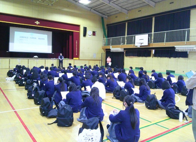 本日6時間目に、明日行われる私立高校入試の事前指導を実施しました。初めに、進路担当教員から下記のお話がありました。