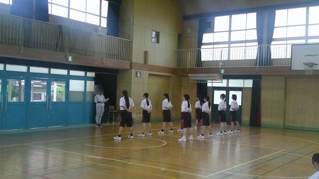 各部の一番後ろに1年生が整列し、全体会で部活動6箇条【挑戦】【感謝】【情熱】【全力】【自立】【絆】の説明と、「部活動のきまり」を確認しました。