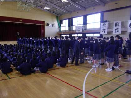 新3年生に続いて新2年生が整列をし、1年生に正しい整列の仕方を見せてくれました。