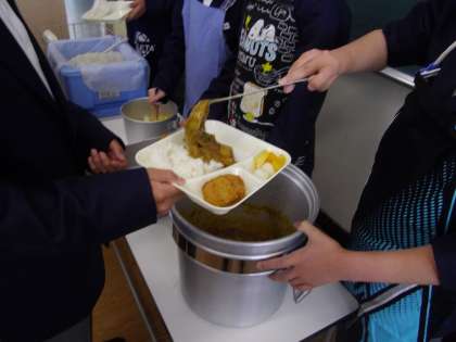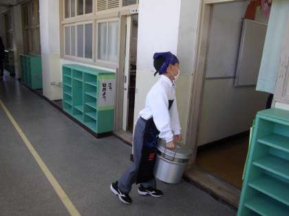 4時間が終わって給食です。