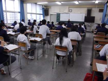 3年3組は社会です。ポーツマス条約あたりの内容で「合うてます?」