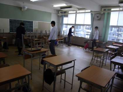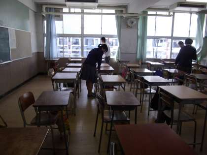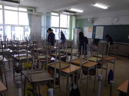 机をもとの位置に戻し終わったら、机の天板を雑巾で拭きます。