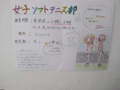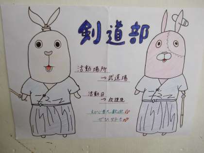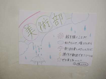 1年生フロアの廊下に「新入部員歓迎」ということでポスターが掲示してあります。