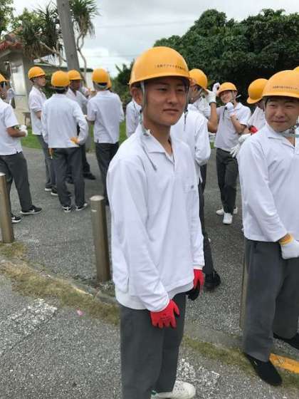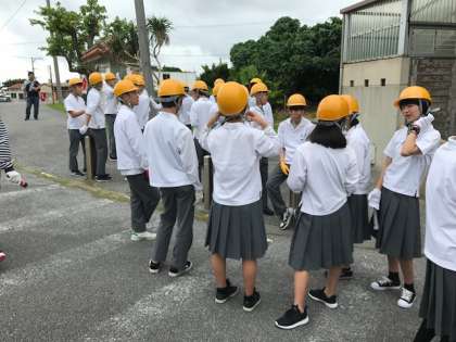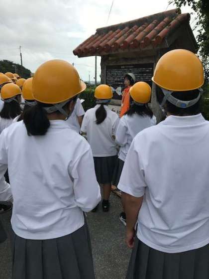 ヘルメットを着用し、ガマへ行きます。