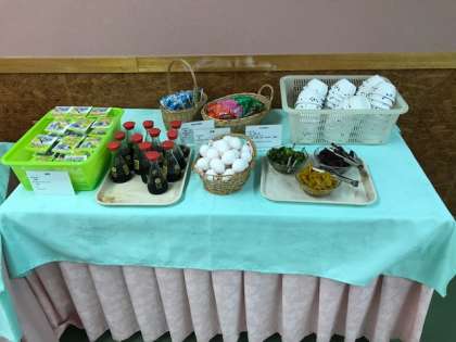 納豆、生卵、お漬け物3種、ふりかけいろいろ