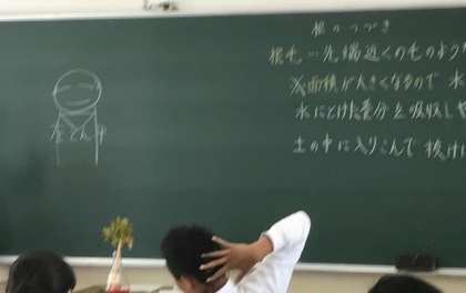 植物の根についている「根毛」の説明から「毛根」の話になり、最後は先生の家族の話となりました。