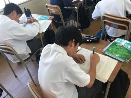 上:単語の練習をしています。黙々とやってました。