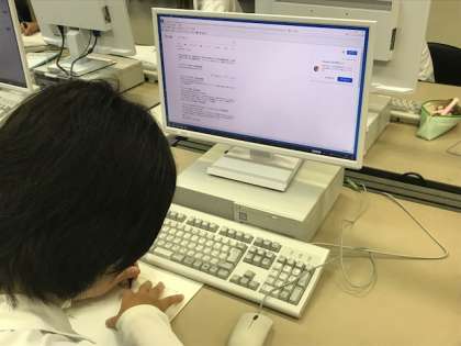 パソコン室で調べ学習をしています。