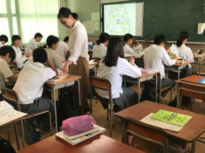 プロジェクターを使って、生徒が見やすく興味関心が持ちやすくなる工夫がこらされています。