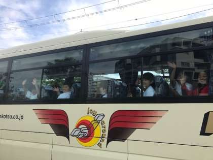 バスに乗車するとき、4階の児童の皆さんが「いってらっしゃーい」と手を振ってお見送りしてくれました。ありがとうございます。