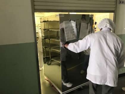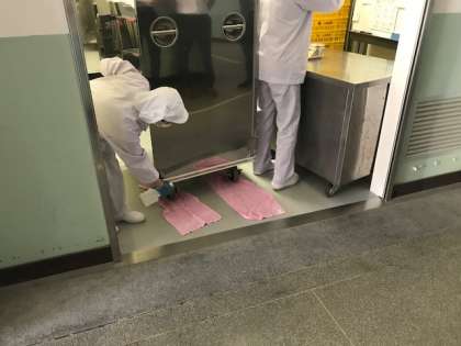 配膳室の中は殺菌・消毒されているので、外から入ってきたものは全て殺菌・消毒しなければなりません。