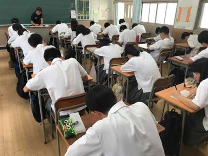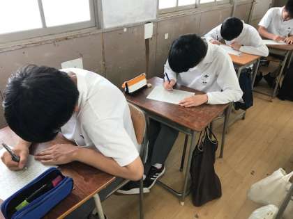 8時30分、放送の指示で問題用紙(裏向き)が配られます。