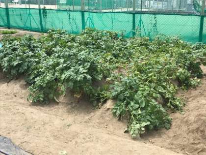 こみち幼稚園には畑がありまして、今日はじゃがいもの収穫をしていました。