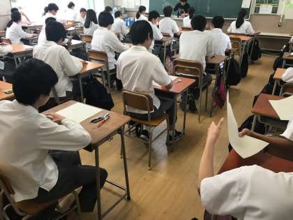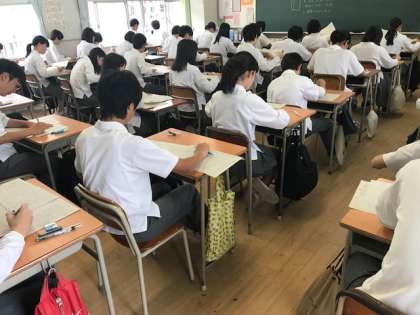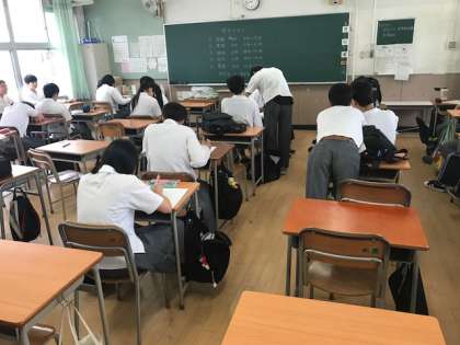 写真は上から、「まだ自習のできる時間」⇒「解答・問題用紙の配布時間」⇒「テスト開始」となっています。