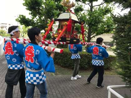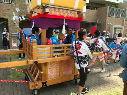 だんじりは各町会の子どもたちが次の町会まで引っ張ります。