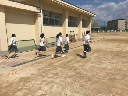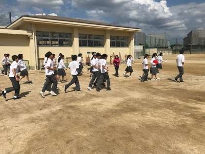 避難指示が出てから運動場に全員出てくるまで約3分30秒でした。