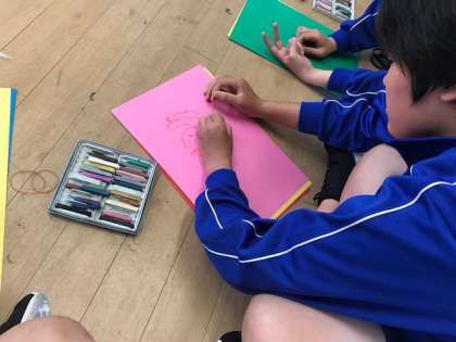 輪になって座って絵をかく、何か楽しそうです。