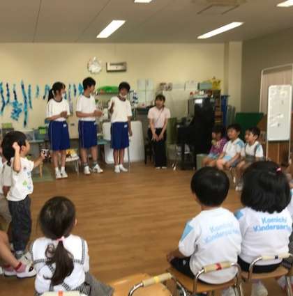 自己紹介です。「せんせー」と呼ばれてうれしそうです。