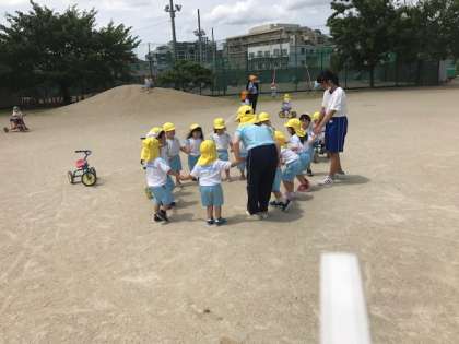 黄色い帽子のお友達が集まってきました。