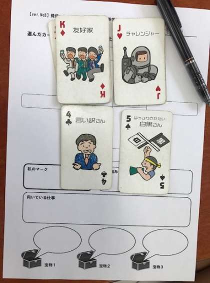 選んだ10枚のトランプをマークごとに分け、ワークシートの上にマークごとに置きます。