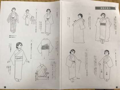 先生の指導とプリント見ながら着方・帯の締め方など学んでいます。