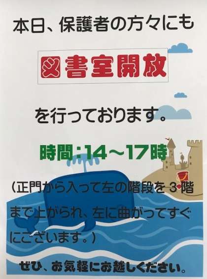 1学期末の懇談期間中(8/10〜12と16〜17)、図書館を開放しています。