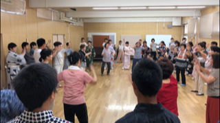 本日、2,3限目に1年1組が浴衣を着て、盆踊りを踊りました。ご協力いただきました地域の皆様、ありがとうございました。