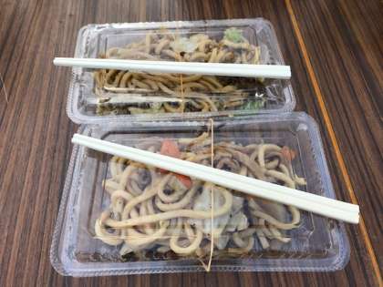 ソース焼きそばにホルモン入り焼うどん、フランクフルト、各種飲み物と品ぞろえ豊富です。
