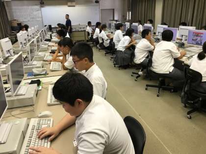 写真上:1年1組の技術、パソコンでカレンダーを作る作業を始めています。